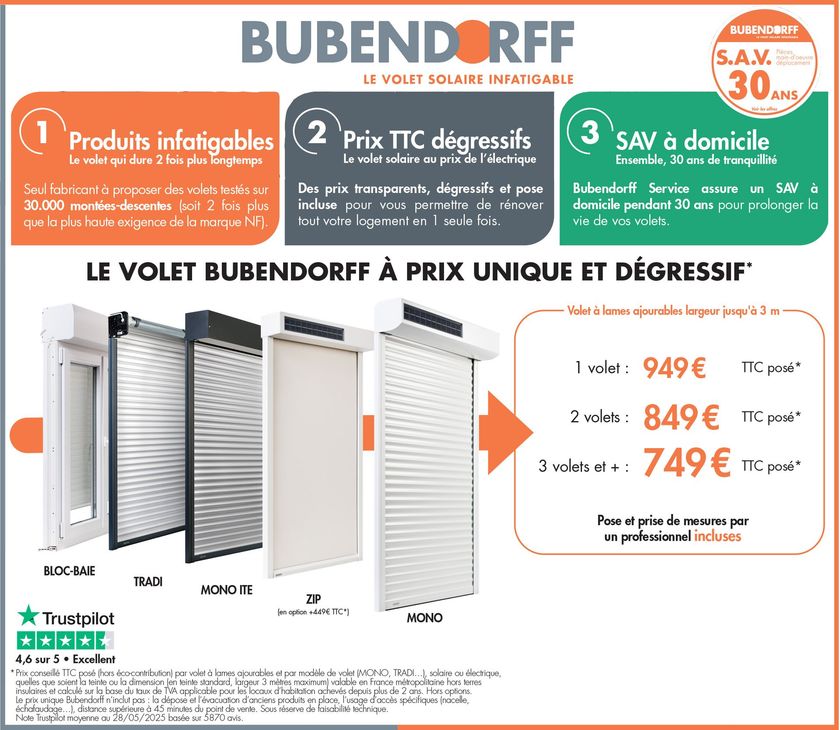 volets roulants et battants sur mesure, motorisés (électriques ou à énergie solaire).